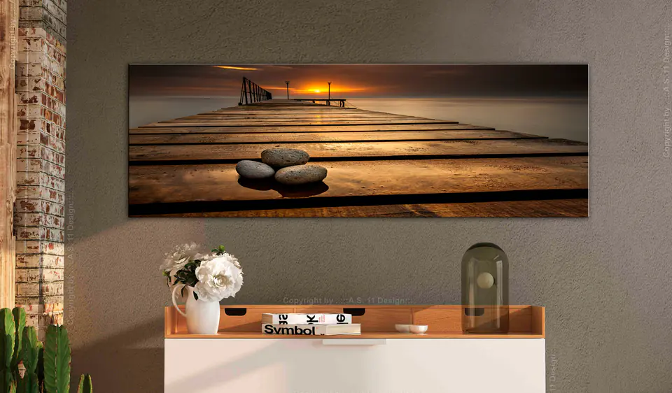 Obraz - Kamienie na molo rozmiar 135x45, wykończenie Na płótnie włoskim