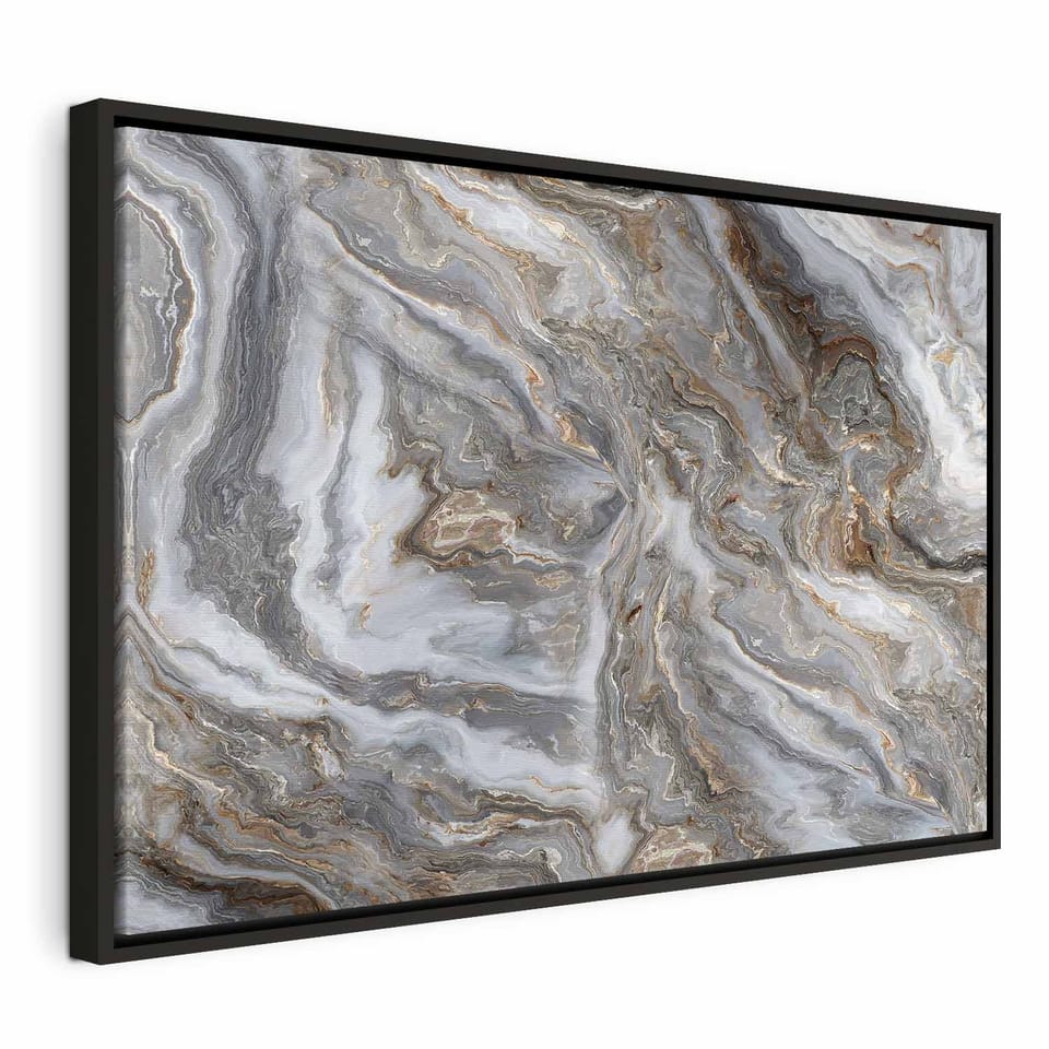 Obraz - Kamienne abstrakcje - marmurowe struktury w neautralnych odcieniach rozmiar 60x40, wykończenie W ramie drewnianej czarnej