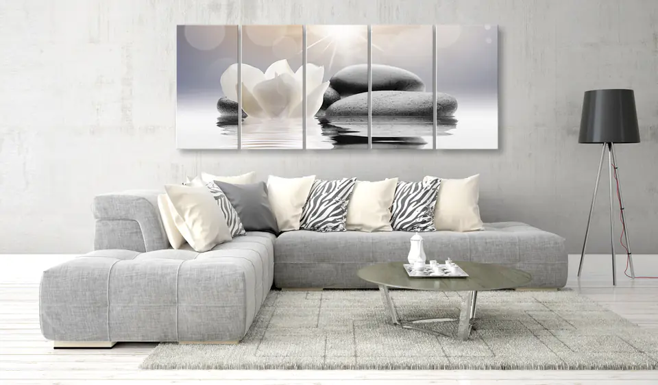 Obraz - Kamyczki na wodzie (5-częściowy) wąski rozmiar 200x80, wykończenie Na płótnie włoskim