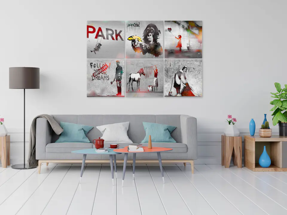 Obraz - Kolaż Banksy (6-częściowy) rozmiar 120x80, wykończenie Premium Print