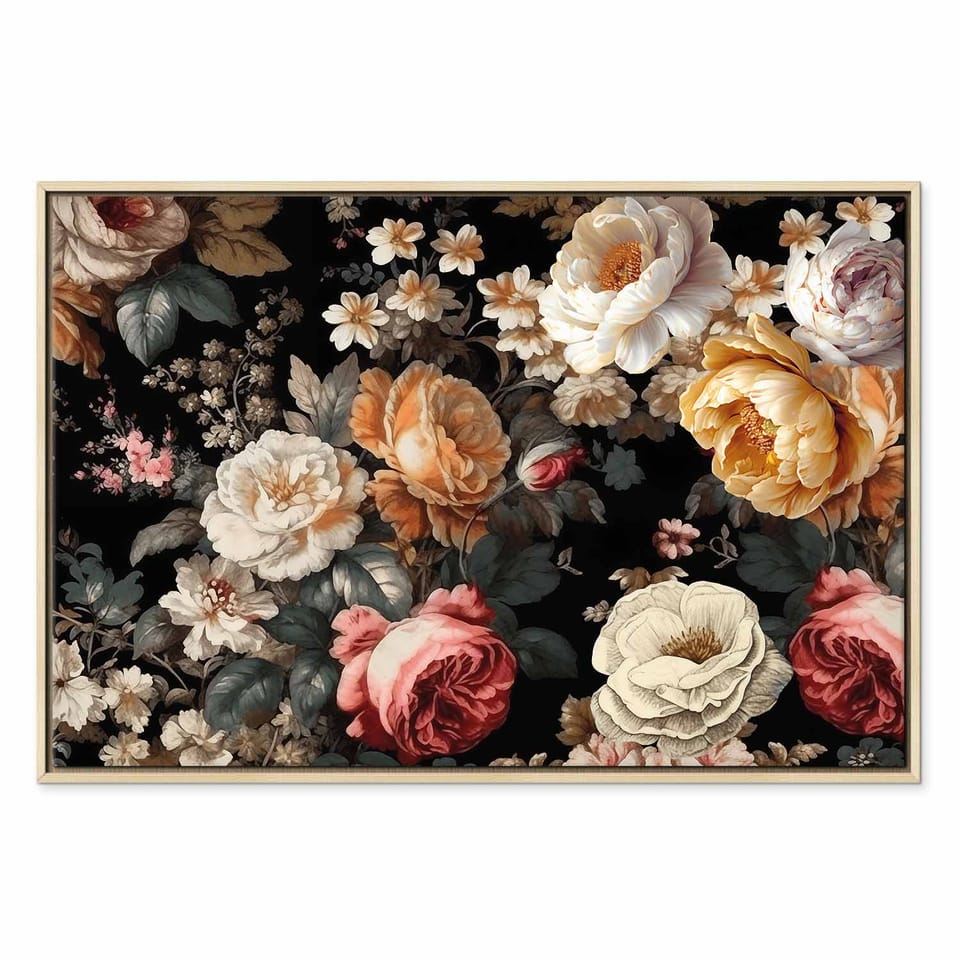 Obraz - Kolorowe kwiaty na czarnym tle rozmiar 120x80, wykończenie W ramie drewnianej naturalnej