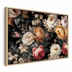 Obraz - Kolorowe kwiaty na czarnym tle rozmiar 60x40, wykończenie W ramie drewnianej naturalnej
