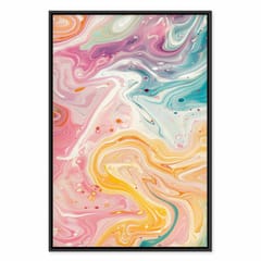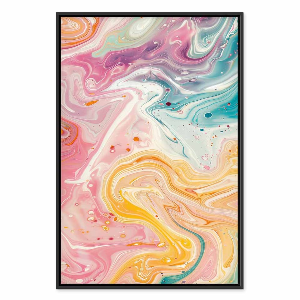 Obraz - Kolorowy Chaos - dynamiczne kształty w odcieniach różu żółci i błękitu rozmiar 80x120, wykończenie W ramie drewnianej czarnej