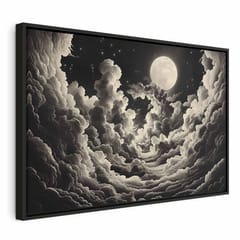Obraz - Księżyc i gwiazdy śpiewające wśród wielkich chmur rozmiar 60x40, wykończenie W ramie drewnianej czarnej