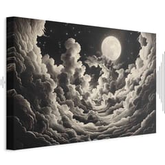 Obraz - Księżyc i gwiazdy śpiewające wśród wielkich chmur rozmiar 90x60, wykończenie Akustyczny