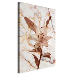 Obraz - Kwiat elegancji (1-częściowy) - delikatna lilia na tle marmuru w sepii rozmiar 60x90, wykończenie Na płótnie włoskim