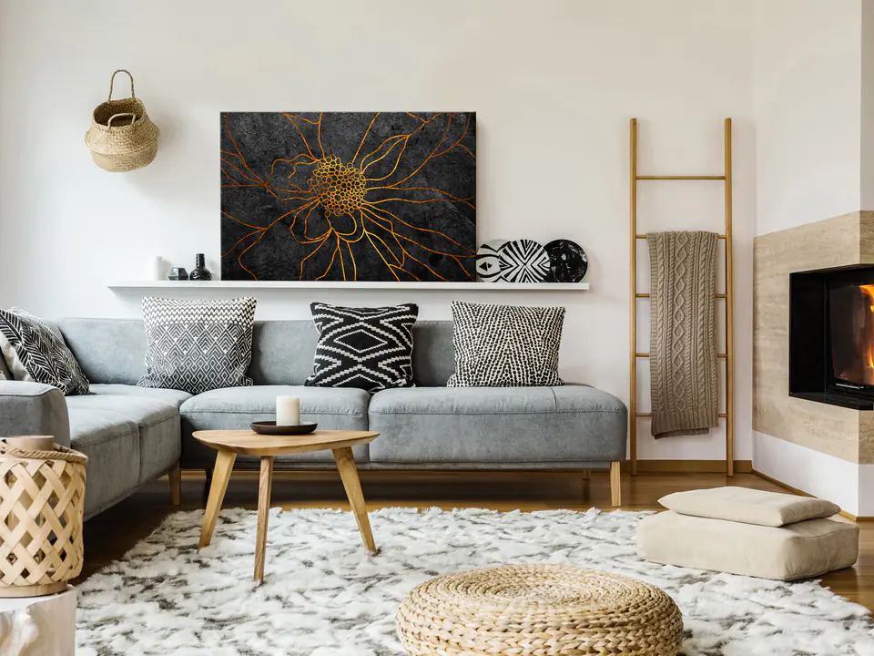 Obraz - Kwiat w złocie (1-częściowy) szeroki rozmiar 60x40, wykończenie Standard