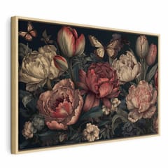 Obraz - Kwiaty na turkusowym tle rozmiar 90x60, wykończenie W ramie drewnianej naturalnej