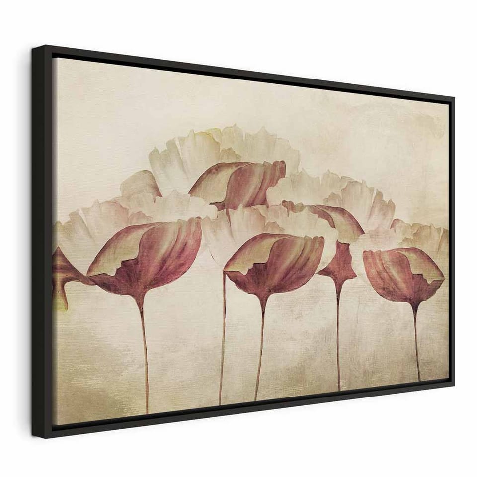 Obraz - Kwiaty w beżu (1-częściowy) szeroki rozmiar 90x60, wykończenie W ramie drewnianej czarnej