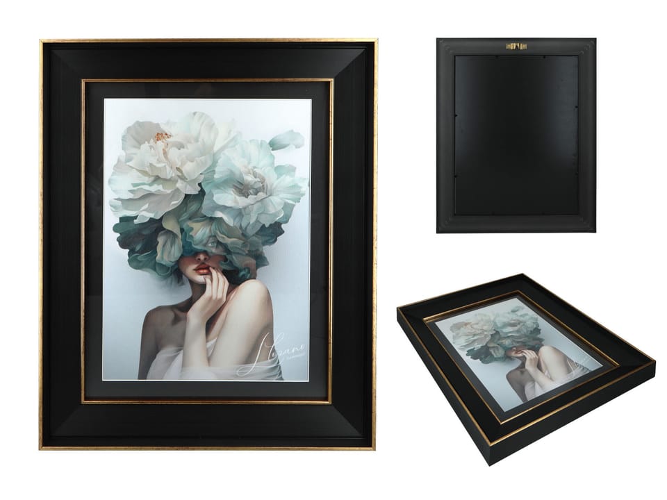 Obraz autorstwa L. Lozano to elegancka kompozycja, która łączy postać kobiecą z bogactwem kwiatów. Kwiaty wokół postaci symbolizują piękno, kobiecość i zmysłowość, tworząc wizualną symfonię, która emanuje spokojem i wdziękiem.