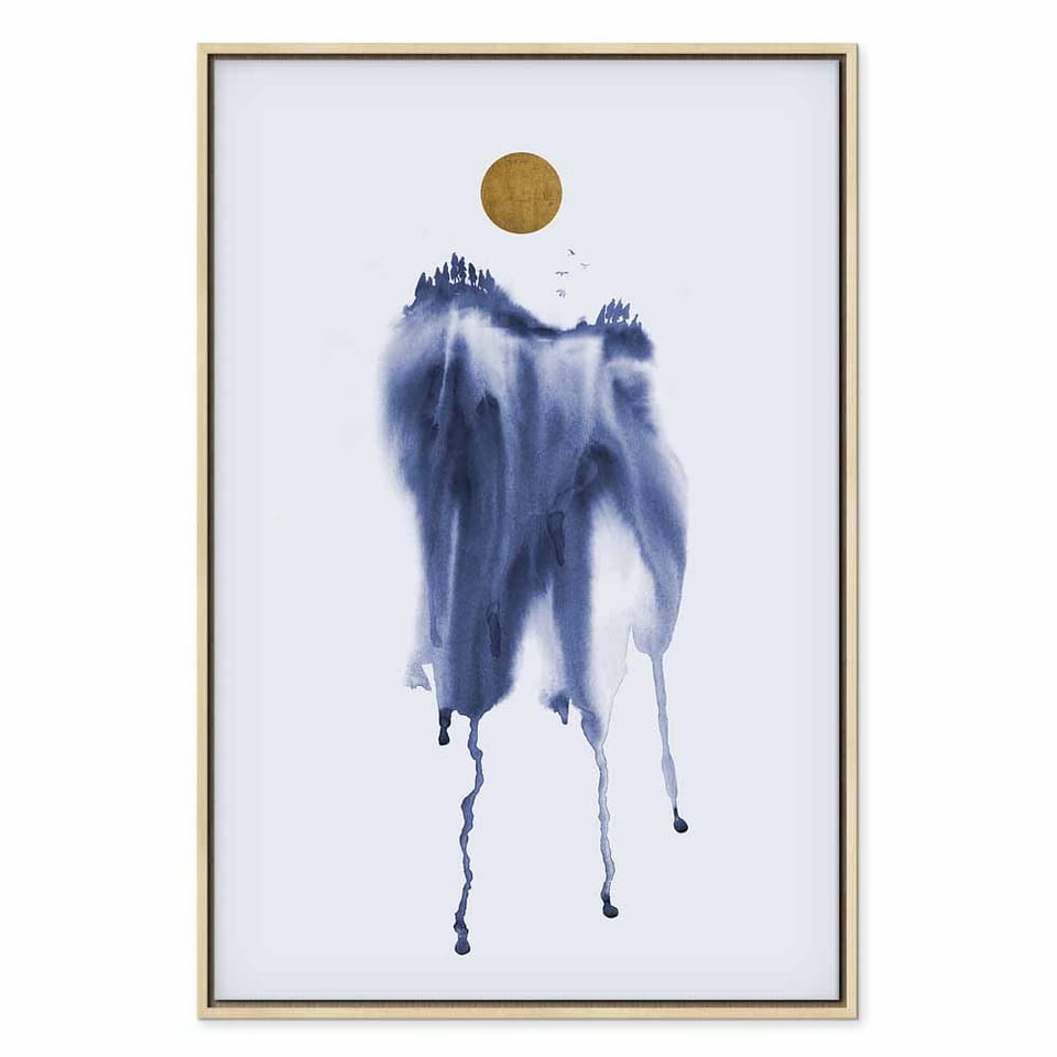 Obraz - Las w akwarelach (1-częściowy) - niebieski odcień pejzażu w abstrakcji rozmiar 80x120, wykończenie W ramie drewnianej naturalnej