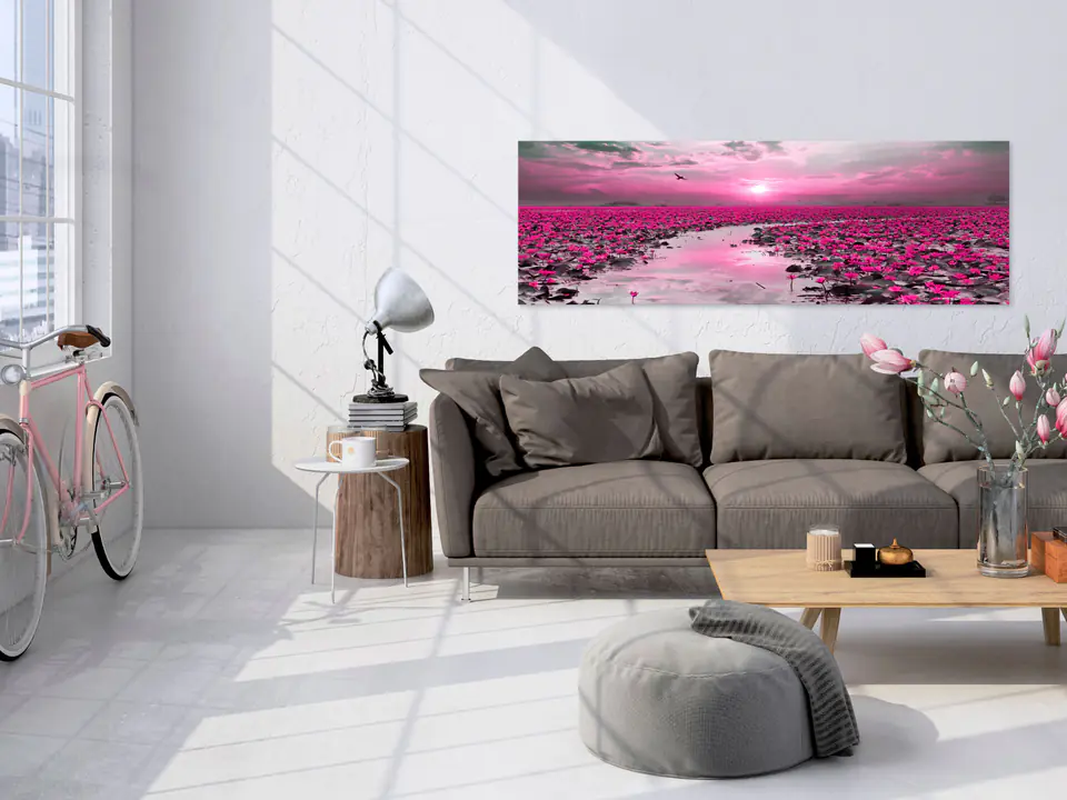 Obraz - Lilie i zachod słońce (1-częsciowy) wąski rozmiar 120x40, wykończenie Na płótnie włoskim
