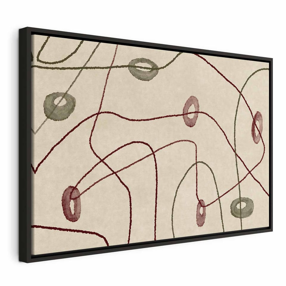 Obraz - Linie i kształty - labirynt z koralików na bladym przecieranym tle rozmiar 60x40, wykończenie W ramie drewnianej czarnej