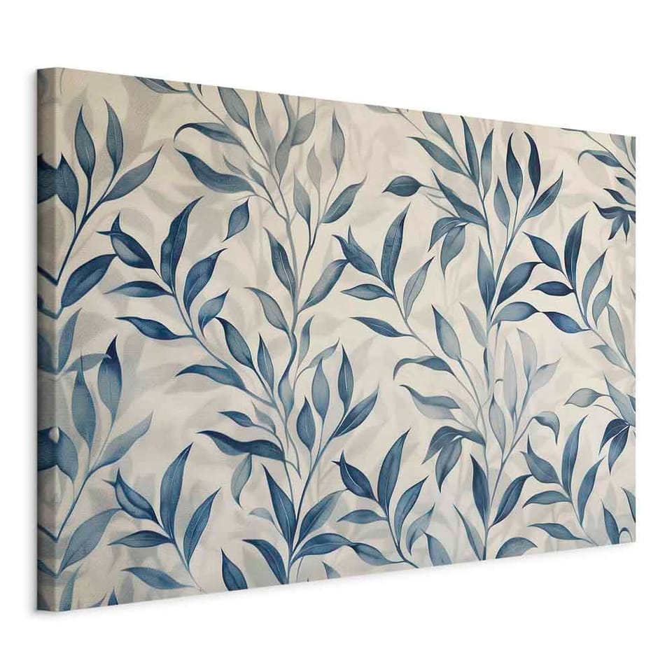 Obraz - Liście w niebieskich kolorach delikatny motyw botaniczny rozmiar 30x20, wykończenie Na płótnie włoskim