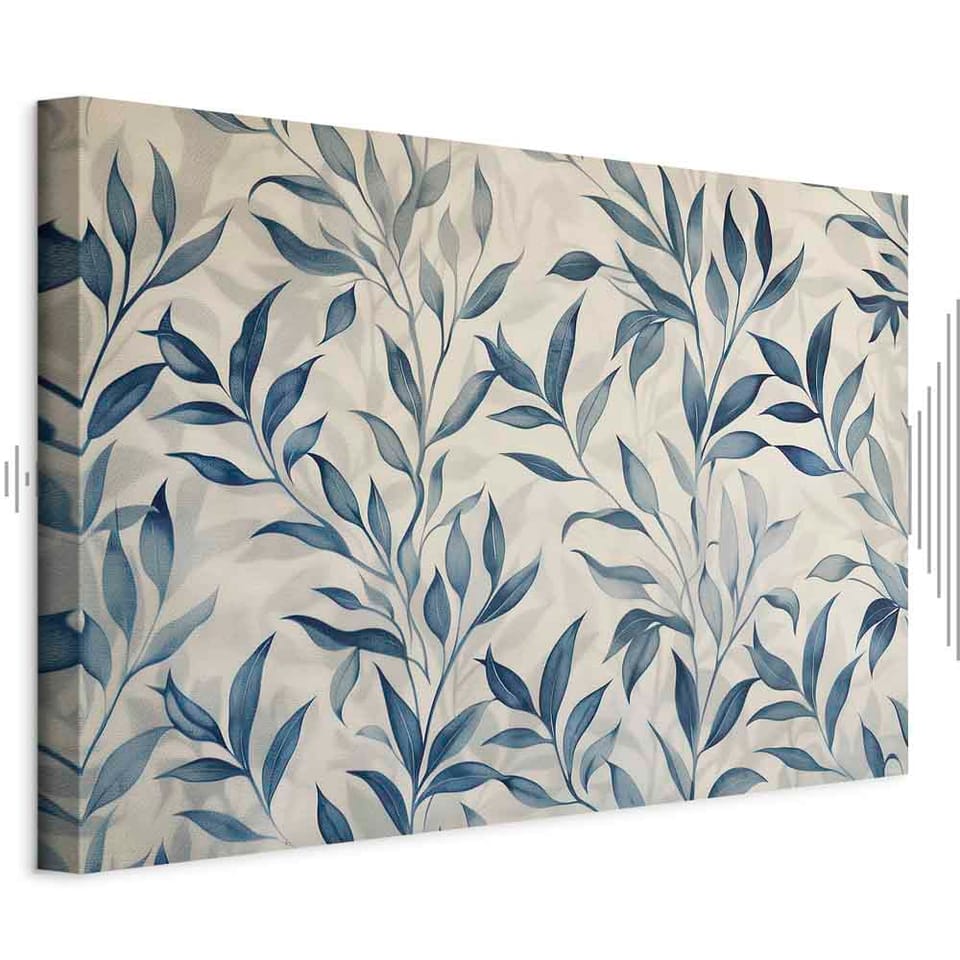Obraz - Liście w niebieskich kolorach delikatny motyw botaniczny rozmiar 90x60, wykończenie Akustyczny