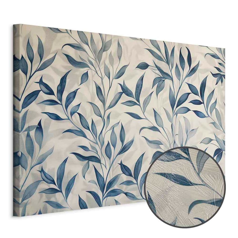 Obraz - Liście w niebieskich kolorach delikatny motyw botaniczny rozmiar 90x60, wykończenie Premium Print