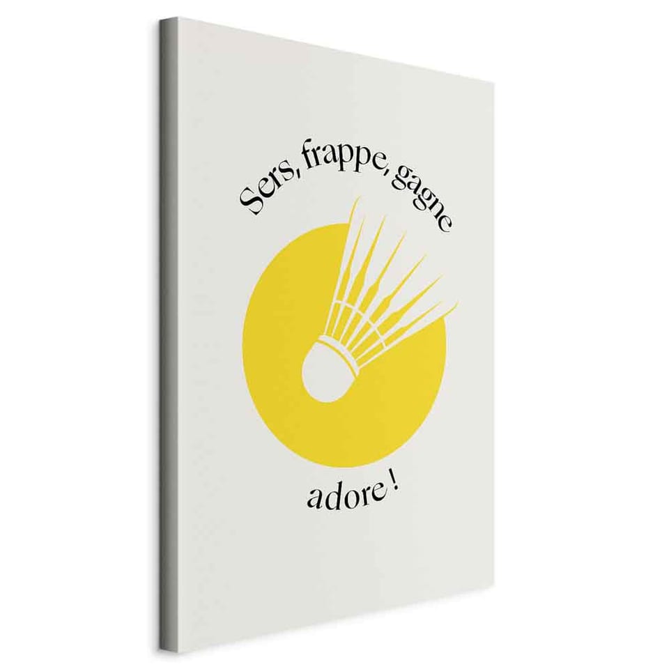 Obraz - Lotka do badmintona na tle żółtego koła rozmiar 20x30, wykończenie Standard