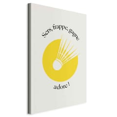Obraz - Lotka do badmintona na tle żółtego koła rozmiar 80x120, wykończenie Na płótnie włoskim