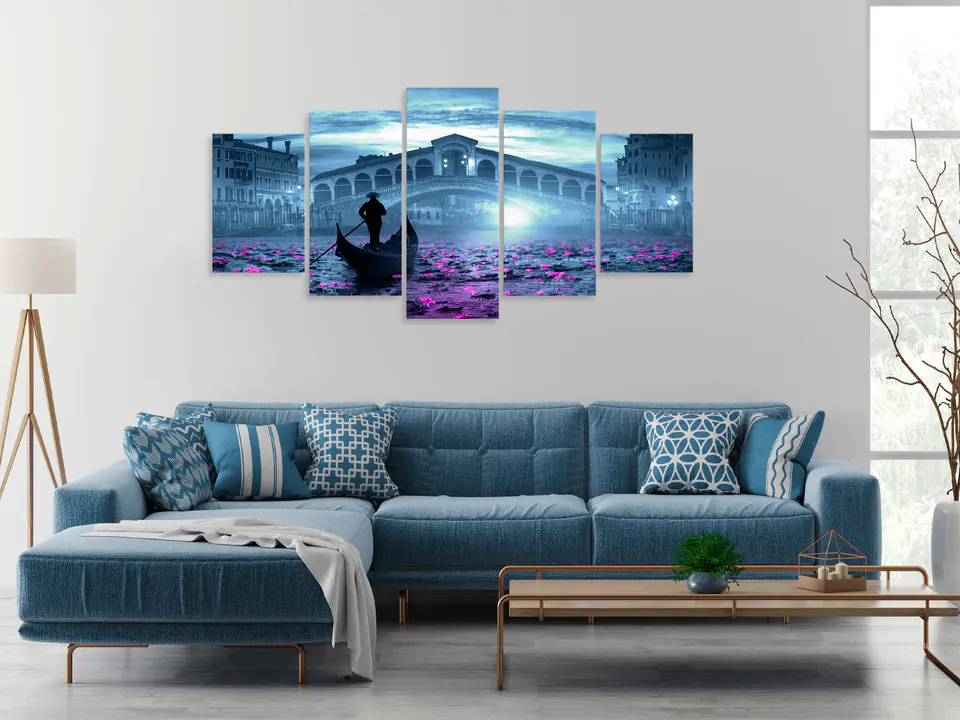 Pozwól, by obraz "Obraz - Magiczna Wenecja (5-częściowy) szeroki niebieski" odmienił Twój dom i domy Twoich bliskich!