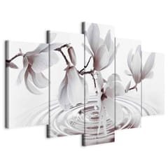 Obraz - Magnolie nad wodą (5-częściowy) szeroki szary rozmiar 225x112.5, wykończenie Standard
