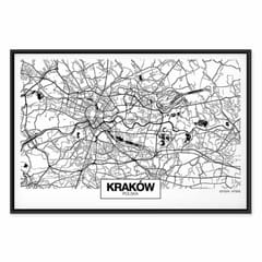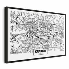 Obraz - Mapa miasta: Kraków (1-częściowy) szeroki rozmiar 60x40, wykończenie W ramie drewnianej czarnej