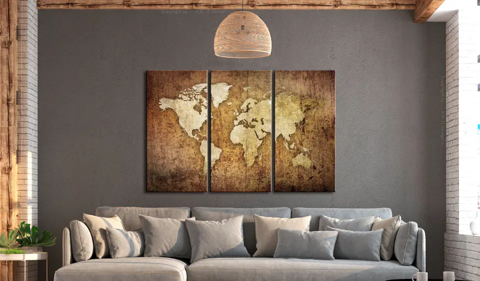 Obraz - Mapa świata: brązowa tekstura rozmiar 120x80, wykończenie Premium Print