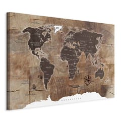 Obraz - Mapa świata: Drewniana mozaika rozmiar 120x80, wykończenie Na płótnie włoskim