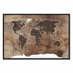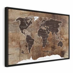 Obraz - Mapa świata: Drewniana mozaika rozmiar 60x40, wykończenie W ramie drewnianej czarnej
