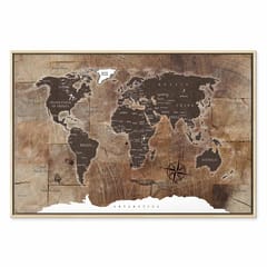 Obraz - Mapa świata: Drewniana mozaika rozmiar 60x40, wykończenie W ramie drewnianej naturalnej