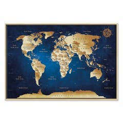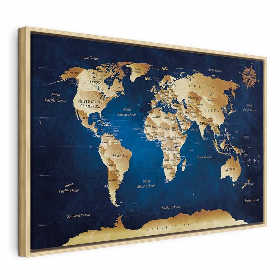 Obraz - Mapa świata: Granatowa głębia rozmiar 120x80, wykończenie W ramie drewnianej naturalnej