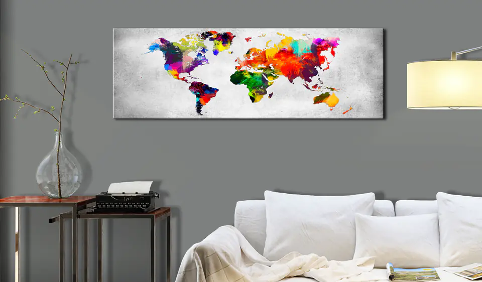 Obraz - Mapa świata: Kolorowa rewolucja rozmiar 150x50, wykończenie Na płótnie włoskim