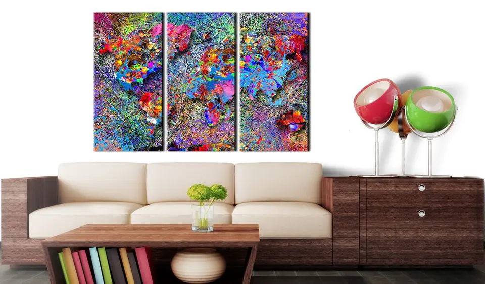 Obraz - Mapa świata: Kolorowe kłębowisko rozmiar 90x60, wykończenie Na płótnie włoskim