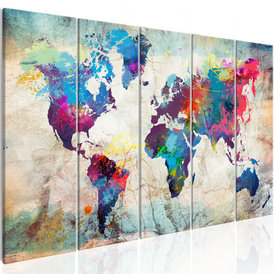 Obraz - Mapa świata: Pęknięta ściana rozmiar 200x80, wykończenie Premium Print