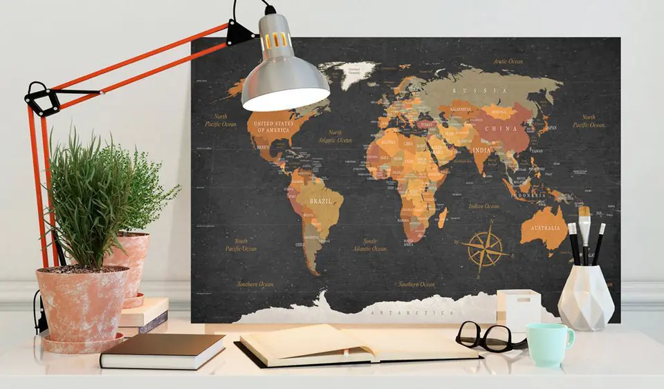 Obraz - Mapa świata: Tajemnice Ziemi rozmiar 120x80, wykończenie Premium Print