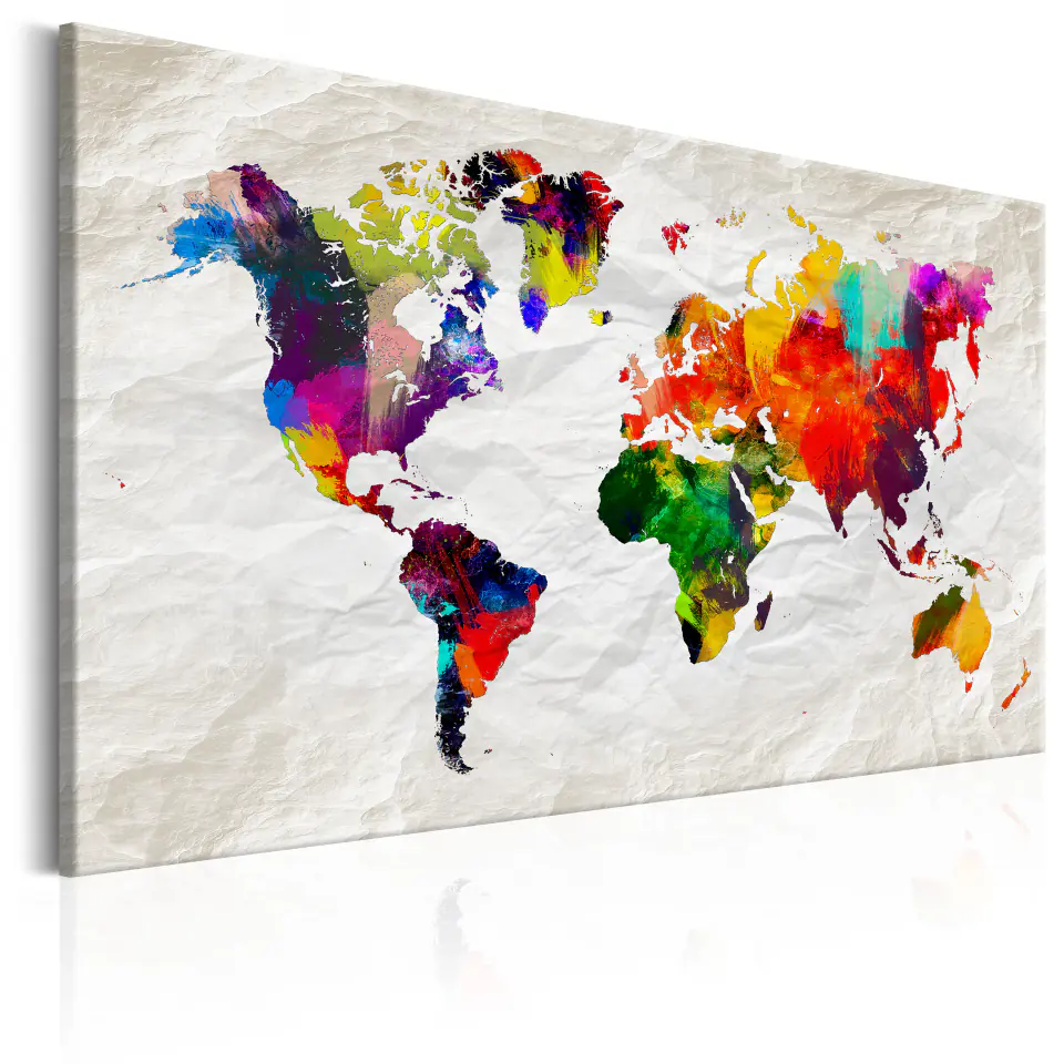 Obraz "Obraz - Mapa świata: Tęczowe szaleństwo" jest drukowany na specjalnym płótnie flizelinowym idealnie odwzorowującym kolory. Płótno jest naciągnięte na lekką, ale stabilną ramę wykonaną z materiałów przyjaznych dla środowiska. Dekorację z najwyższej półki zapewnia druk wysokiej jakości, dzięki któremu kolory są wyraziste, a detale znakomicie odtworzone, niezależnie od formatu obrazu.
