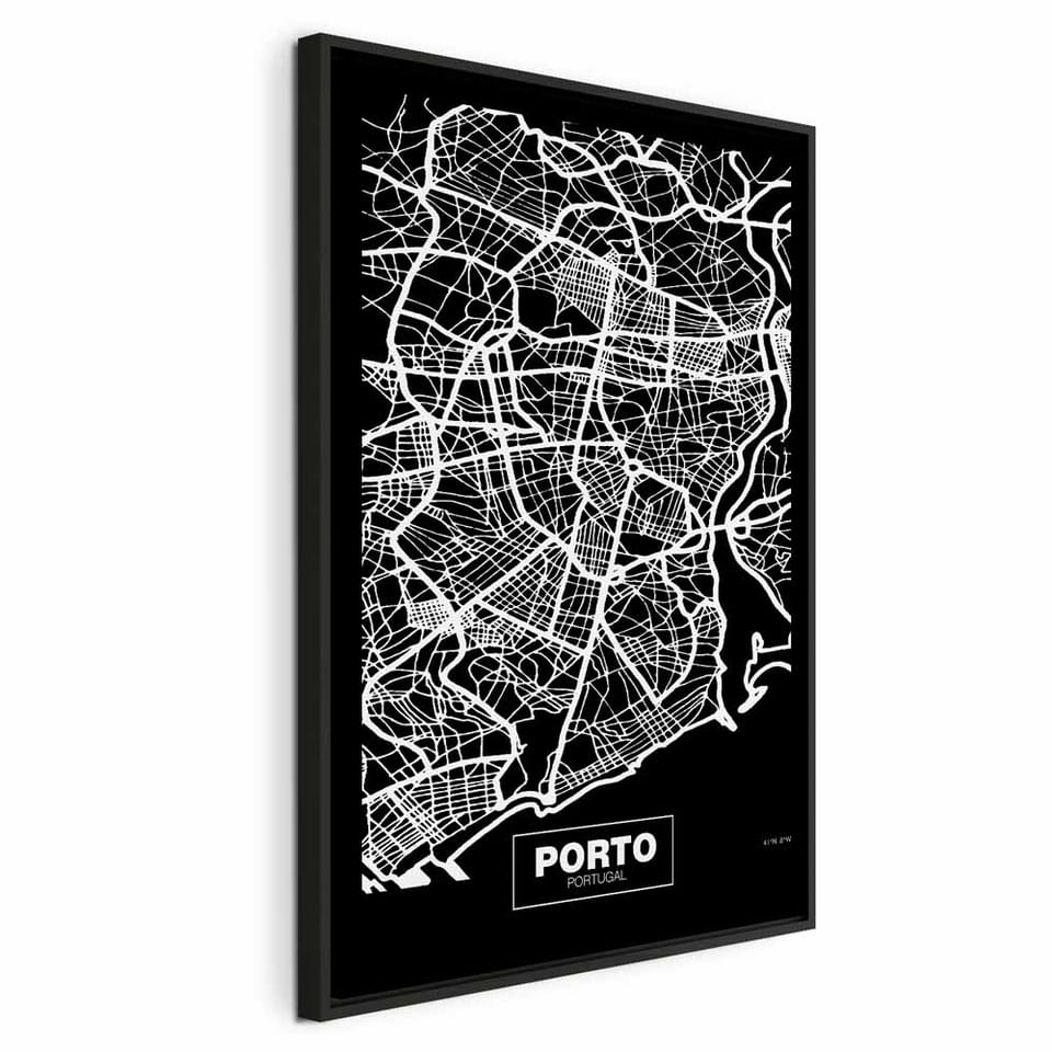 Obraz - Mapa w negatywie: Porto (1-częściowy) pionowy rozmiar 40x60, wykończenie W ramie drewnianej czarnej