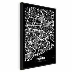 Obraz - Mapa w negatywie: Porto (1-częściowy) pionowy rozmiar 60x90, wykończenie W ramie drewnianej czarnej
