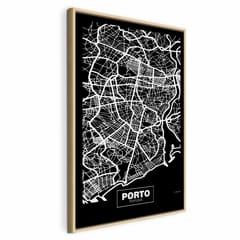 Obraz - Mapa w negatywie: Porto (1-częściowy) pionowy rozmiar 60x90, wykończenie W ramie drewnianej naturalnej