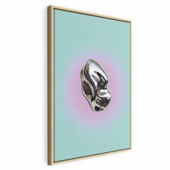 Obraz - Metaliczna Forma - abstrakcyjna rzeźba na miętowym tle z fioletowym halo rozmiar 80x120, wykończenie W ramie drewnianej naturalnej