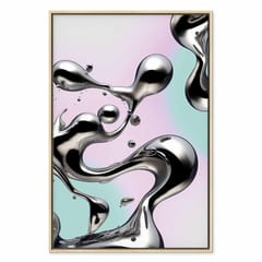 Obraz - Metaliczne Płynności - abstrakcyjne srebrne formy na miętowo-fioletowym tle rozmiar 40x60, wykończenie W ramie drewnianej naturalnej