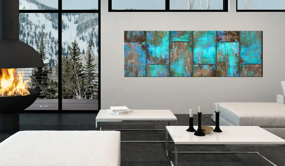 Obraz - Metalowa mozaika: Niebieski rozmiar 150x50, wykończenie Standard