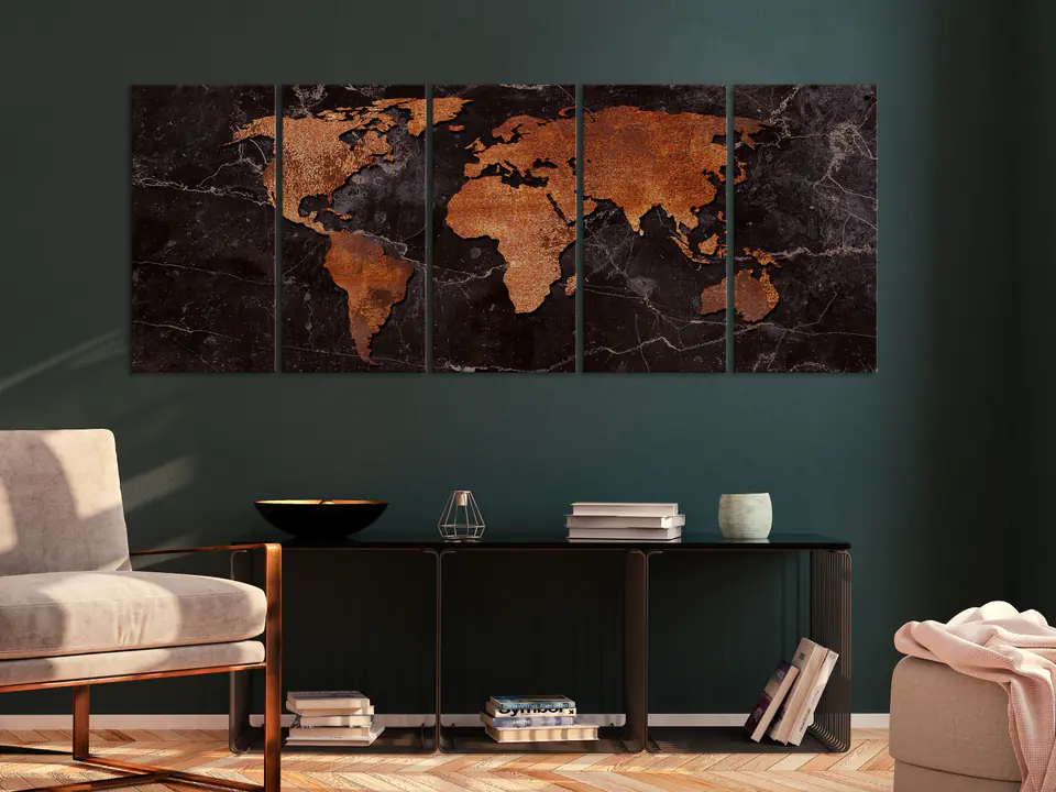 Obraz - Miedziana mapa (5-częściowy) wąski rozmiar 225x90, wykończenie Standard
