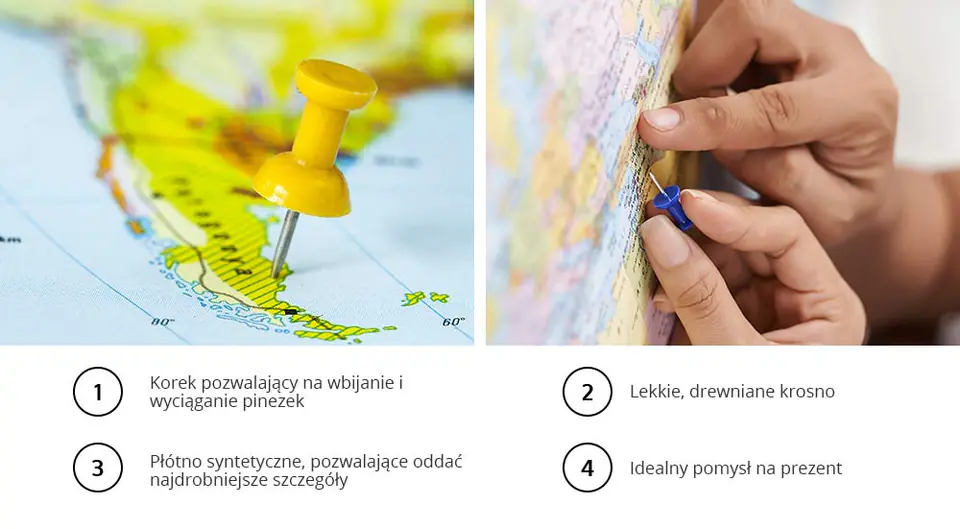 Obraz na korku "Obraz na korku - Bursztynowy świat [Mapa korkowa]" to produkt dla osób poszukujących oryginalnych ozdób na ścianę. Ekologiczny materiał i ciekawy wzór sprawiają, że zwykła tablica korkowa zmienia się w stylowy dodatek, który możesz wykorzystać w rozmaity sposób. Do obrazów na korku można przypinać pinezki, zaznaczać odwiedzone miejsca na mapie lub doczepiać notatki. Obraz na korku "Obraz na korku - Bursztynowy świat [Mapa korkowa]" jest o wiele lżejszy od tradycyjnych dekoracji ściennych. Dzięki temu ozdobne tablice korkowe mogą zawisnąć w dowolnym miejscu w Twoim mieszkaniu bądź biurze. Płótno z wydrukiem nakładane jest na płytę korkową. Dzięki temu nadruk cechuje się wyrazistymi kolorami i oddaje najdrobniejsze detale. Przypnij do niego pinezki lub notatki i stwórz swój indywidualny wzór na swojej ścianie!