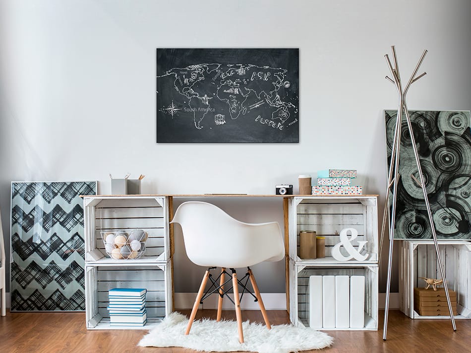 Obraz na korku "Obraz na korku - Podróże kształcą [Mapa korkowa]" to produkt dla osób poszukujących oryginalnych ozdób na ścianę. Ekologiczny materiał i ciekawy wzór sprawiają, że zwykła tablica korkowa zmienia się w stylowy dodatek, który możesz wykorzystać w rozmaity sposób. Do obrazów na korku można przypinać pinezki, zaznaczać odwiedzone miejsca na mapie lub doczepiać notatki. Obraz na korku "Obraz na korku - Podróże kształcą [Mapa korkowa]" jest o wiele lżejszy od tradycyjnych dekoracji ściennych. Dzięki temu ozdobne tablice korkowe mogą zawisnąć w dowolnym miejscu w Twoim mieszkaniu bądź biurze. Płótno z wydrukiem nakładane jest na płytę korkową. Dzięki temu nadruk cechuje się wyrazistymi kolorami i oddaje najdrobniejsze detale. Przypnij do niego pinezki lub notatki i stwórz swój indywidualny wzór na swojej ścianie!