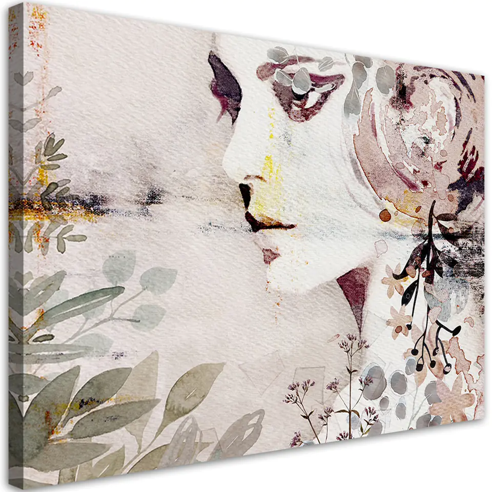 Obraz na płótnie, Abstrakcyjna twarz kobiety z kwiatami Rozmiar 60x40