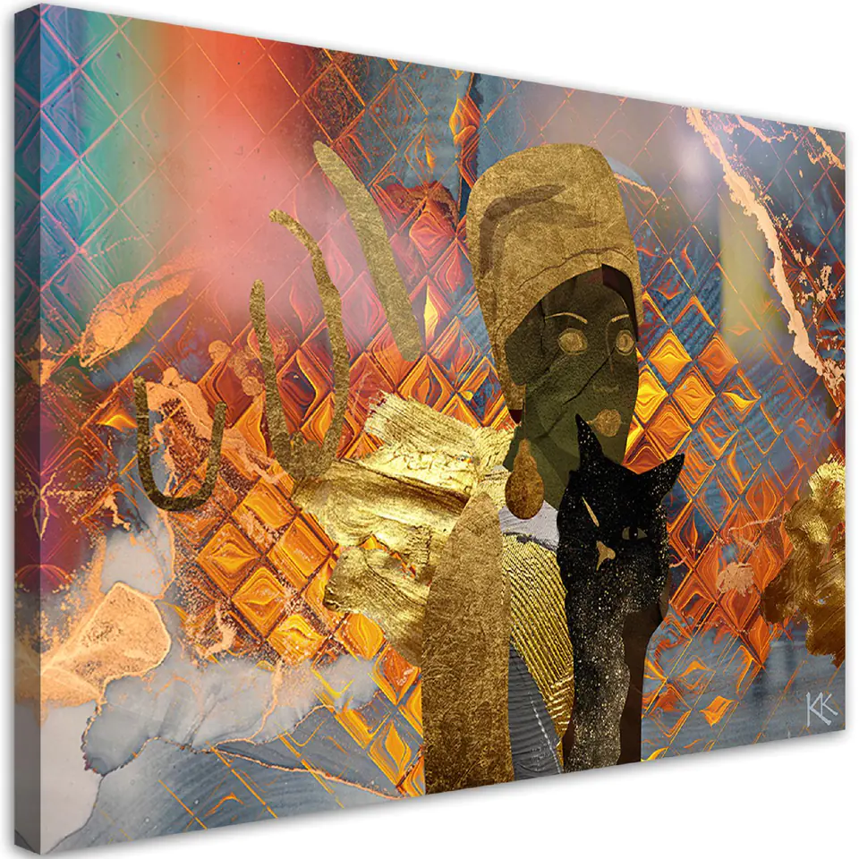 Obraz na płótnie, Afrykańska kobieta i czarny kot (Rozmiar 120x80)