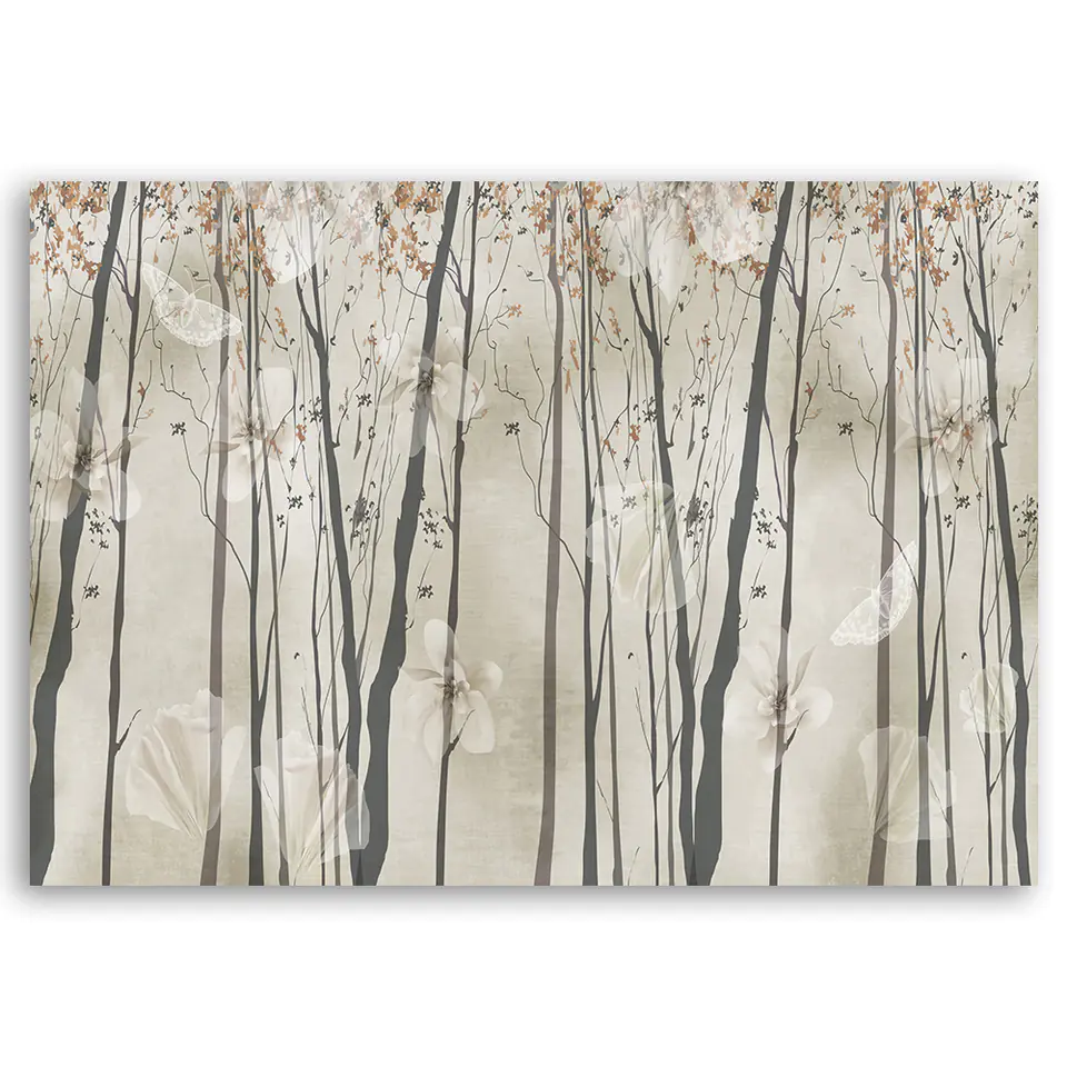 Obraz na płótnie, Drzewa kwiaty i motyle (Rozmiar 100x70)