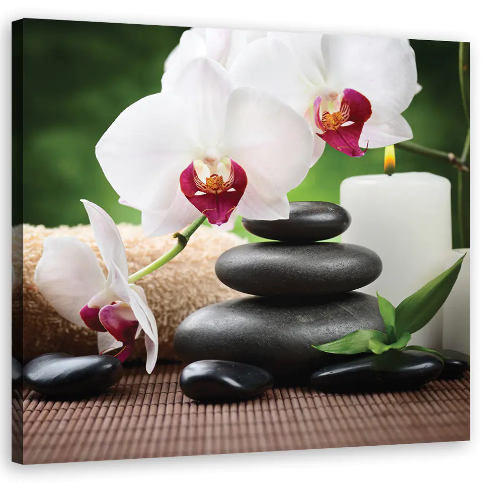 Obraz na płótnie, Orchidee, zen, kamienie (Rozmiar 50x50)
