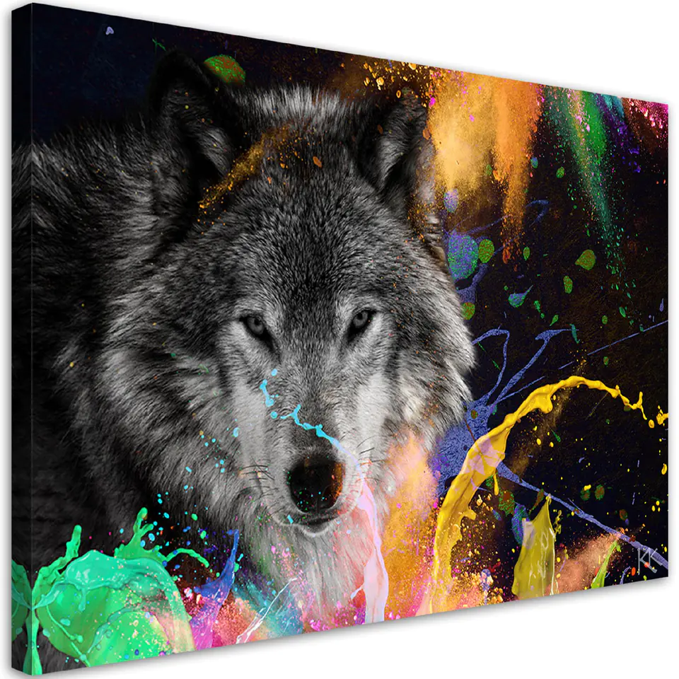 Obraz na płótnie, Wilk na kolorowym tle Rozmiar 120x80