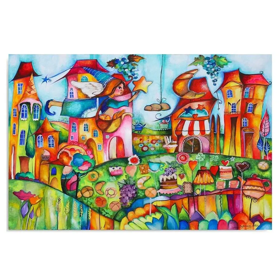 Obraz na płótnie, Wróżka w kolorowym miasteczku (Rozmiar 120x80)